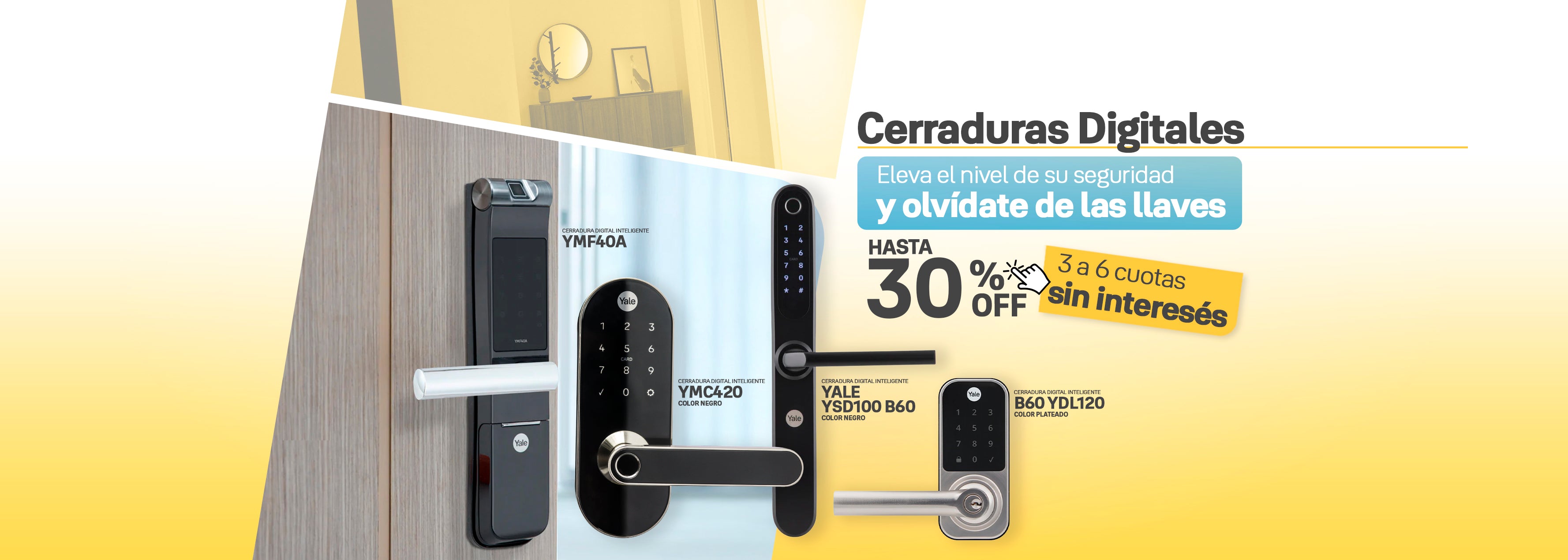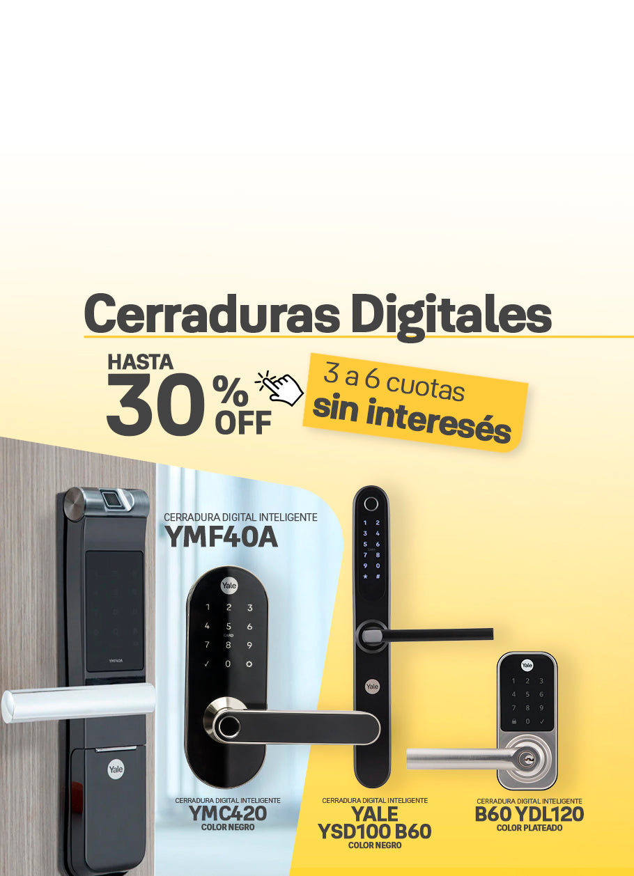 Nuestras cerraduras digitales combinan seguridad avanzada con comodidad y estilo, integrándose perfectamente en tu vida diaria. Con acceso sin llaves y control remoto a través de nuestra app Yale Connect, puedes gestionar la seguridad de tu hogar desde cualquier lugar, con la tranquilidad de saber que tus datos están protegidos. Simplifica tu vida con una solución segura y conectada.