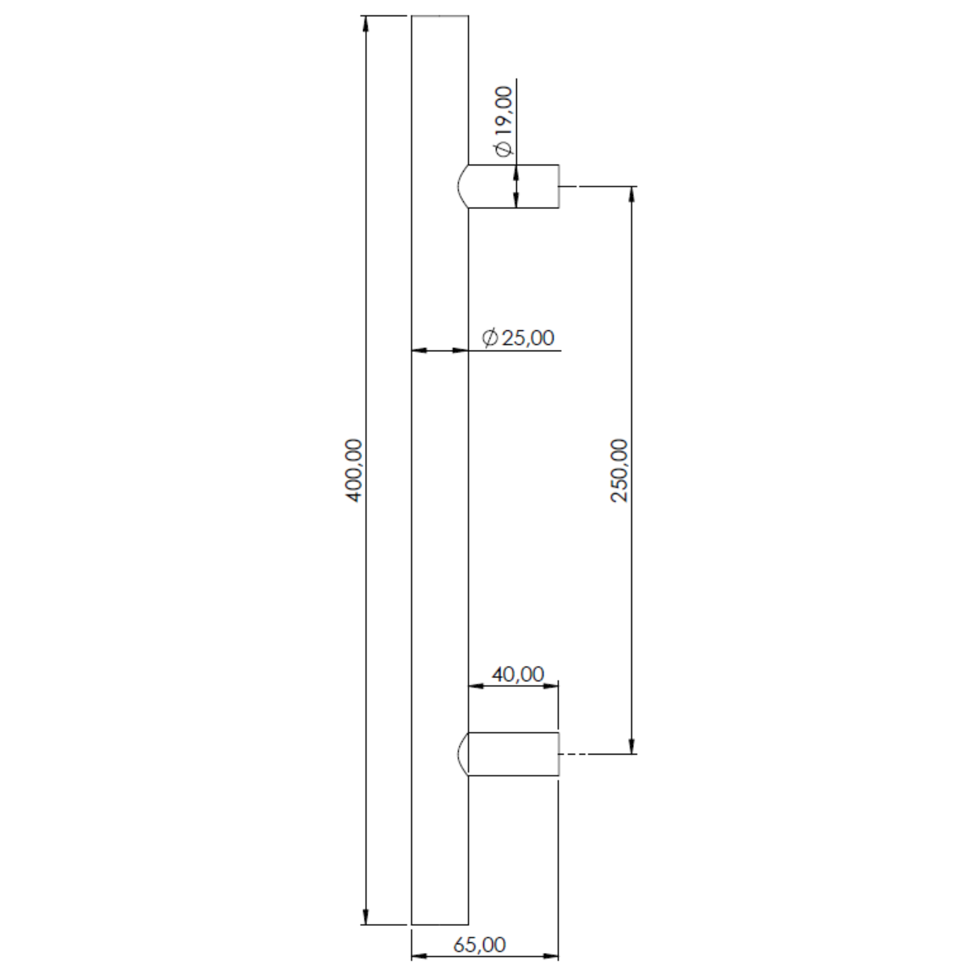 • Dimensiones: 40cm de largo x 2,5cm de diámetro
