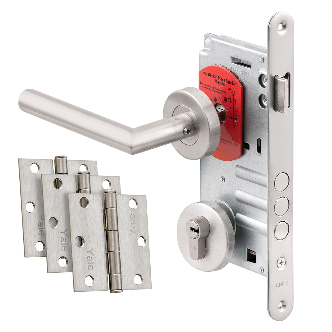 Pack Cerradura Embutida Toscana B60 Acceso 1/2 + 3 Bisagras Con Golillas 3,5x 3,5